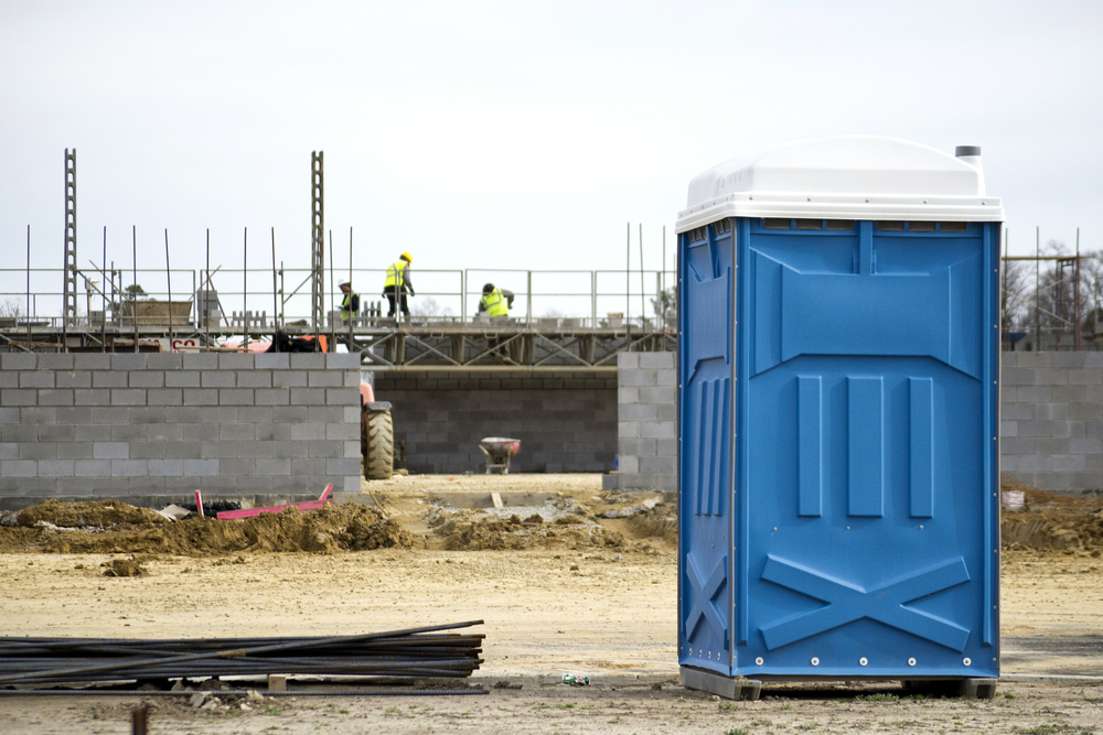 Portable restrooms are common on job sites and road work areas, providing essential facilities.